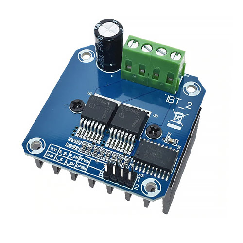 BTS7960 - Драйвер колекторного двигуна, дозволяє управляти одним колекторним двигуном розрахованим на напругу живлення від 5.5 до 27.5 вольт, з струмом до 43 А.